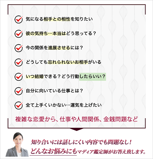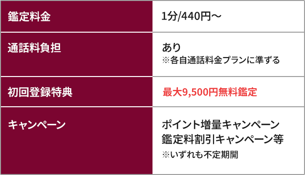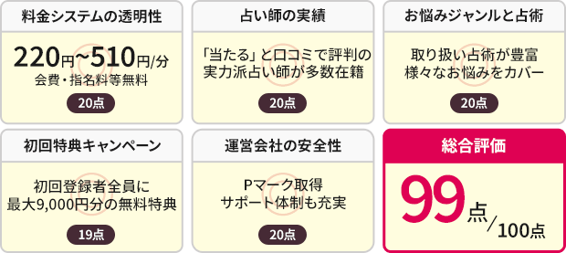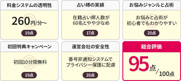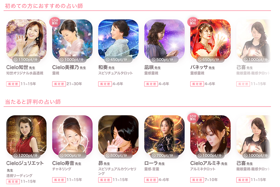 - 占い師の水準が高いので「当たり外れ」が少ない