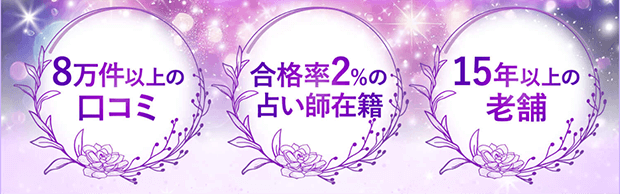 全国各地から選び抜かれた一流のプロ占い師による本格鑑定を、365日24時間いつでも受けることができるのがメリット。在籍占い師は約50名とやや少なめですが、業界屈指の厳選採用を通過した実力派のみが揃っているのが大きな特徴です。