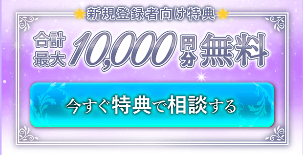 リノアでは初回登録特典とその他キャンペーンを合わせると約10,000円分の鑑定が無料になるのでリピートする場合は特にお得です。
