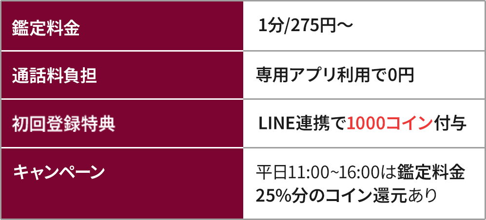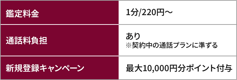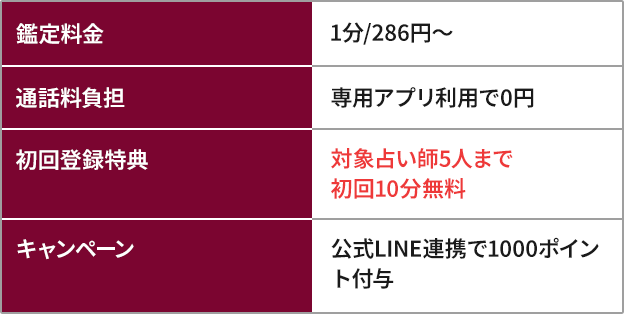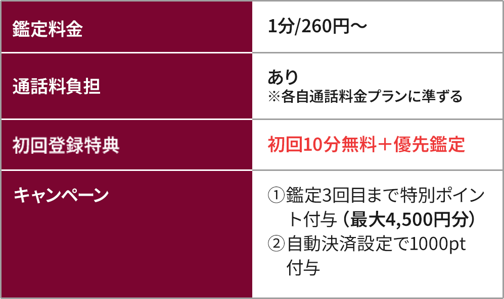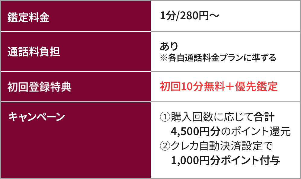 - 初回特典で【最大70分】の無料鑑定が受けられる