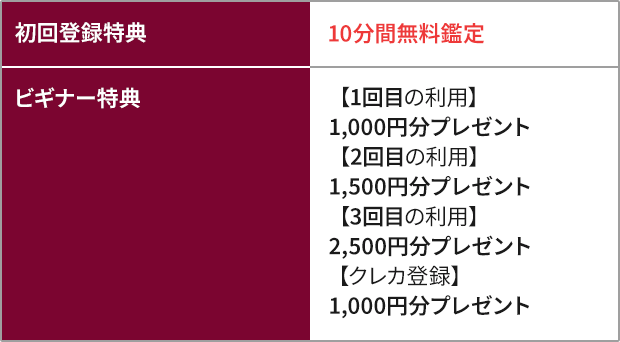 セラの初回特典は10分間無料&優先鑑定なので、「待ち時間なくすぐに試したい」という方はぜひ活用してほしい内容です。