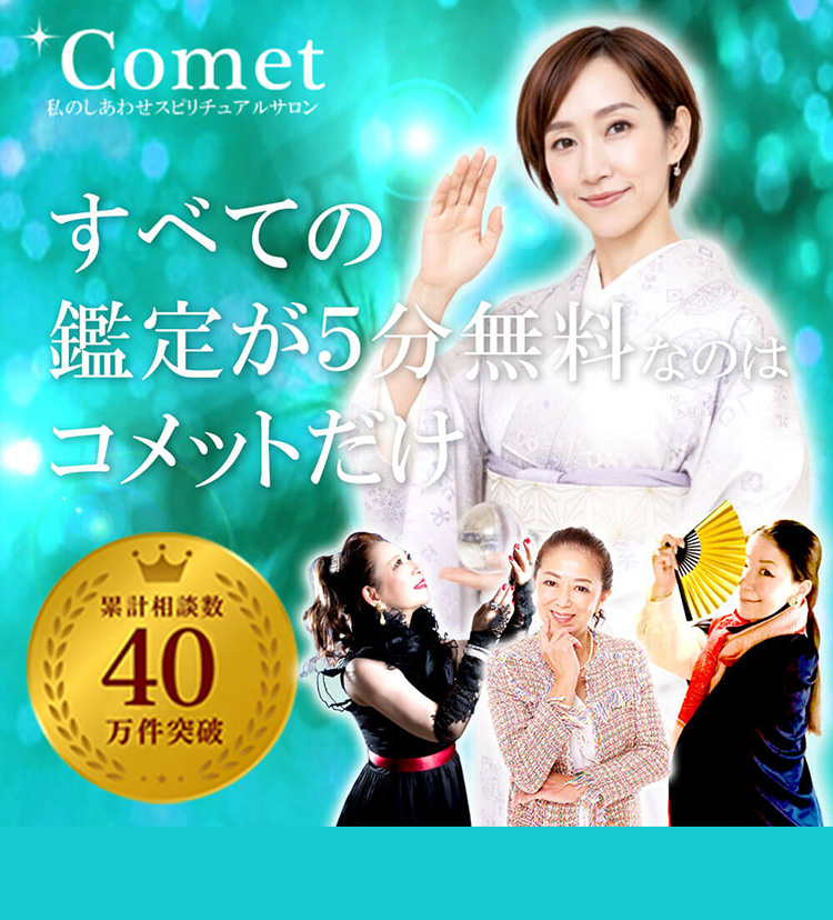 鑑定実績20万人を突破、口コミで「当たる」と話題の電話占いコメット。恋愛相談に強いカリスマ占い師が多く在籍しているので、復縁、複雑愛、相性診断もお任せ!初めて相談する占い師ならいつでも・誰でも【5分間無料】のサービスあり。