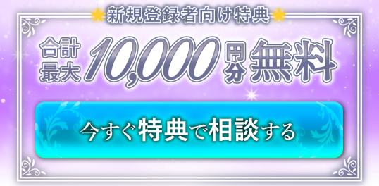 上記6段階で逐一プレゼントされる無料コインは合計10,000円もの鑑定料金に相当するので、本格占いをお得に試したい人は必見です!